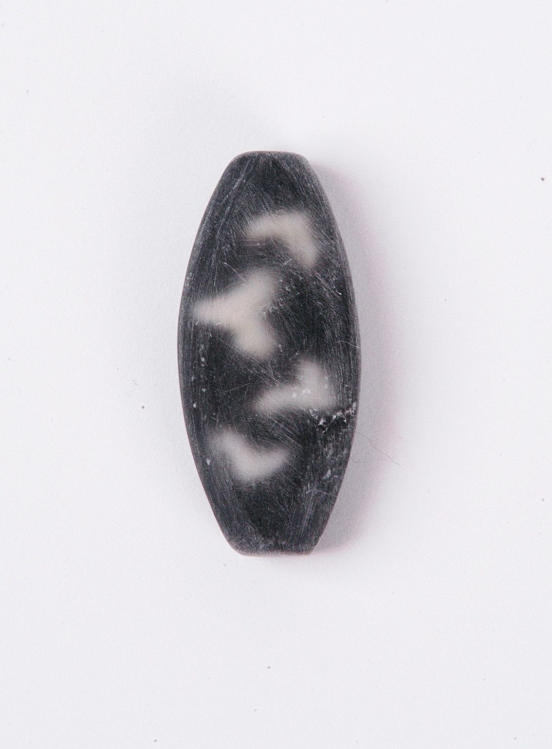 Da wegen der Metallallergie keine Metallöse gesetzt werden konnte, sollte die Befestigung des Anhängers mithilfe eines Lederbandes und da über eine Querbohrung erfolgen.
