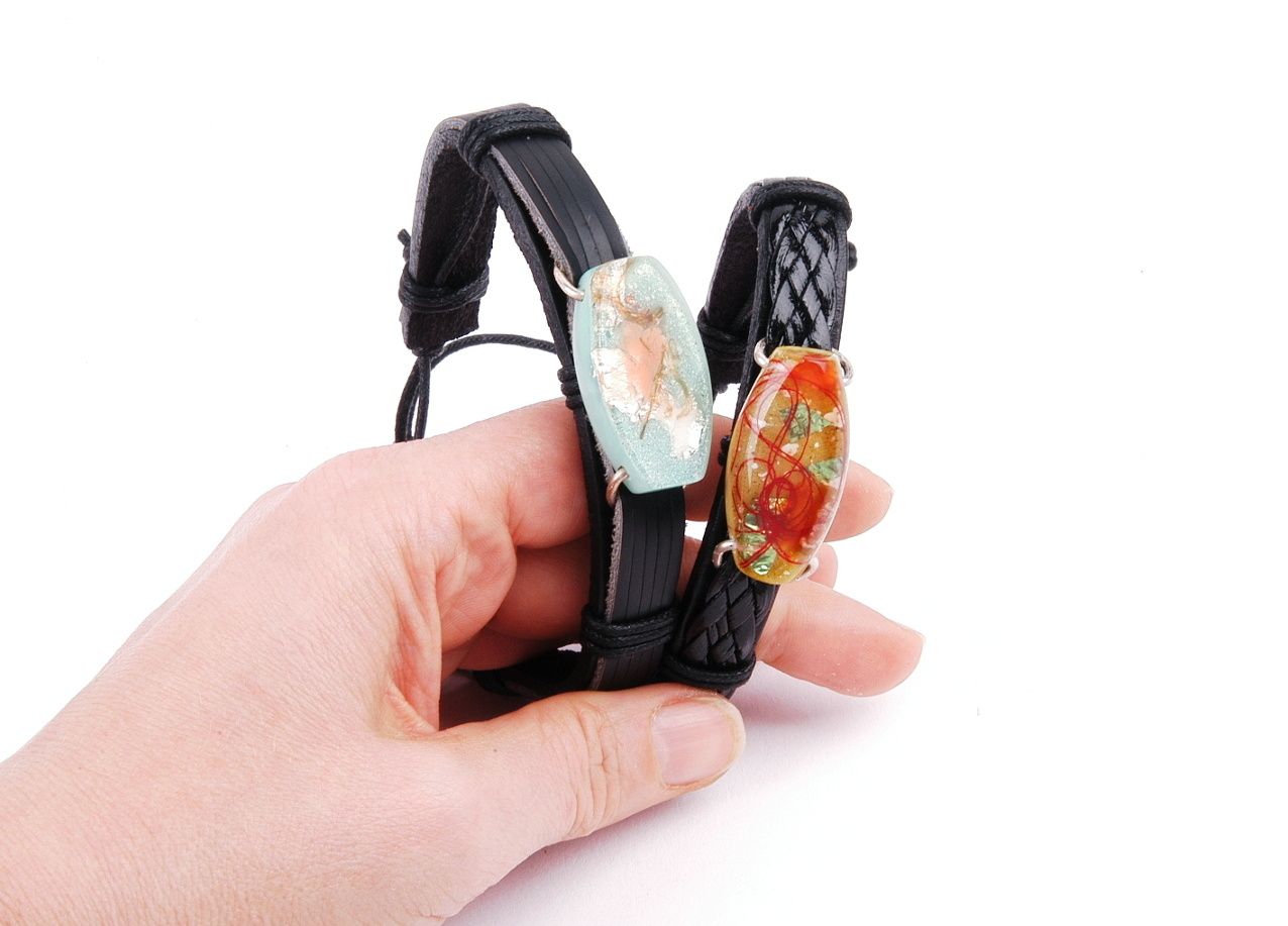 Lederarmbänder mit bunten Kunstharz-Schmucksteinen von Edna Mo