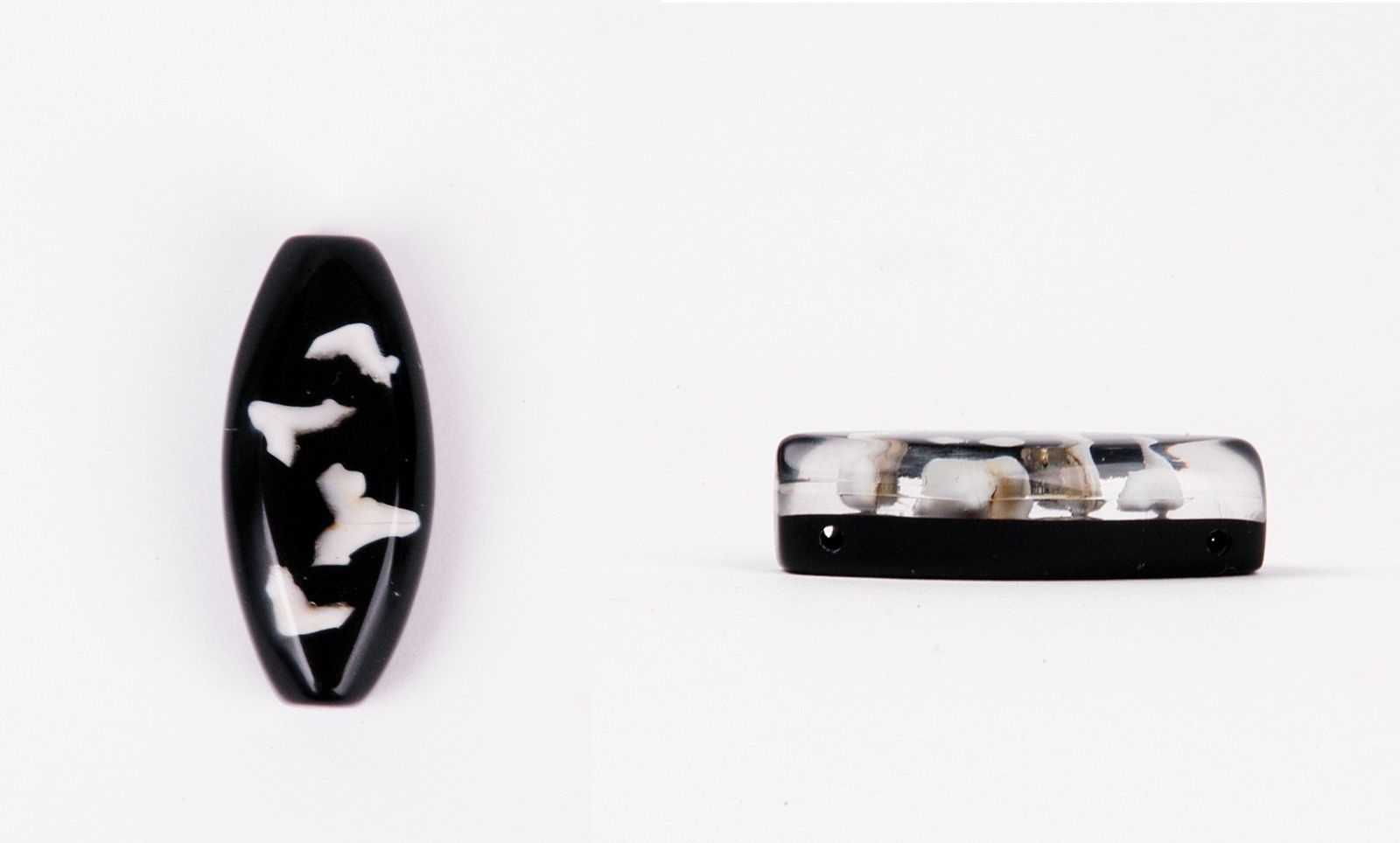 In der Seitenansicht des fertigen Armband-Schmucksteins kann man sehr gut den Effekt der transparenten Kuppe und der schwarzen Farbschicht als unteren Abschluss sehen.