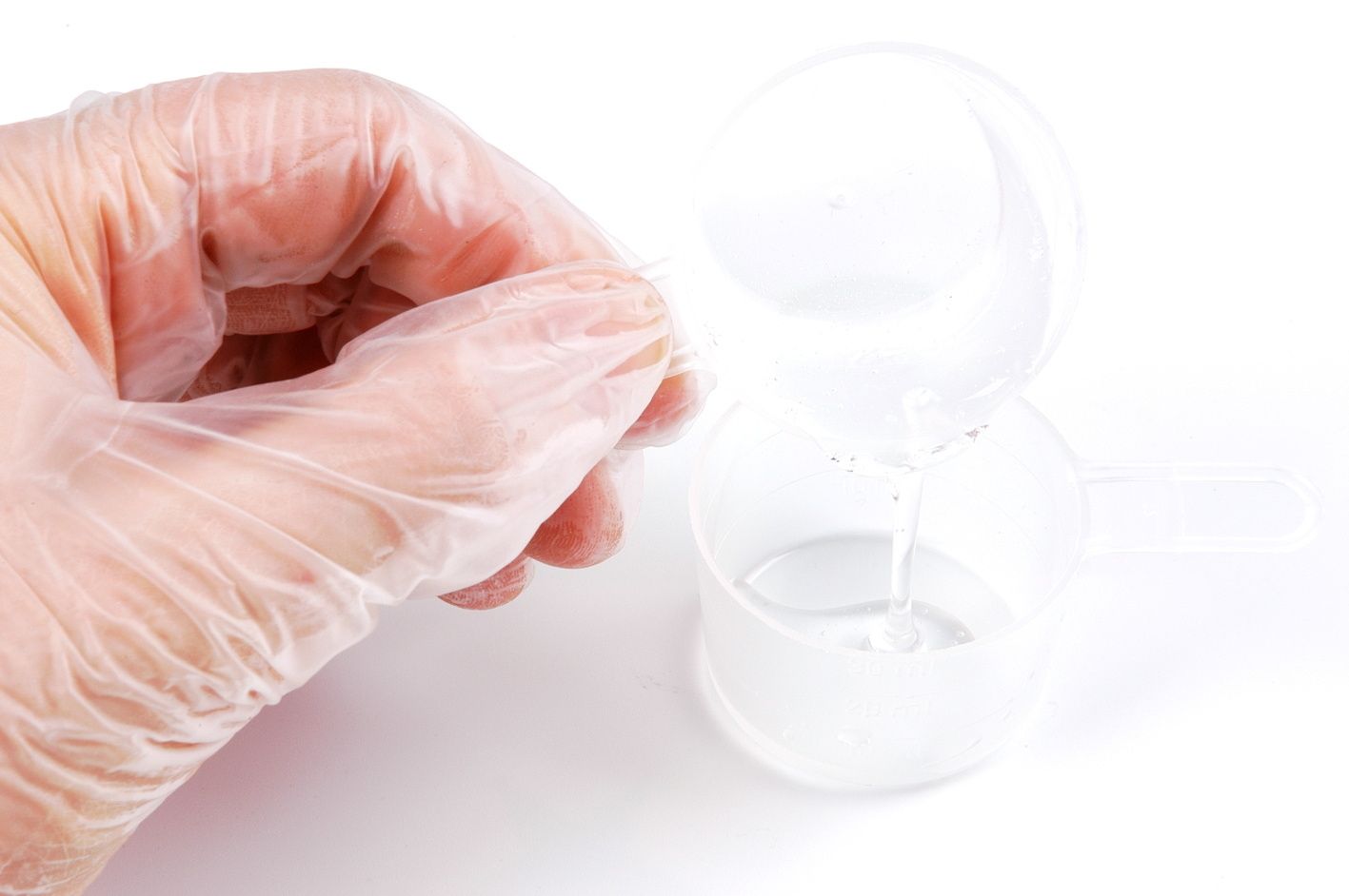 Beim Mischen der beiden Harzkomponente kann man dank Schlierenbildung erkennen, dass eine chemische Reaktion stattfindet.