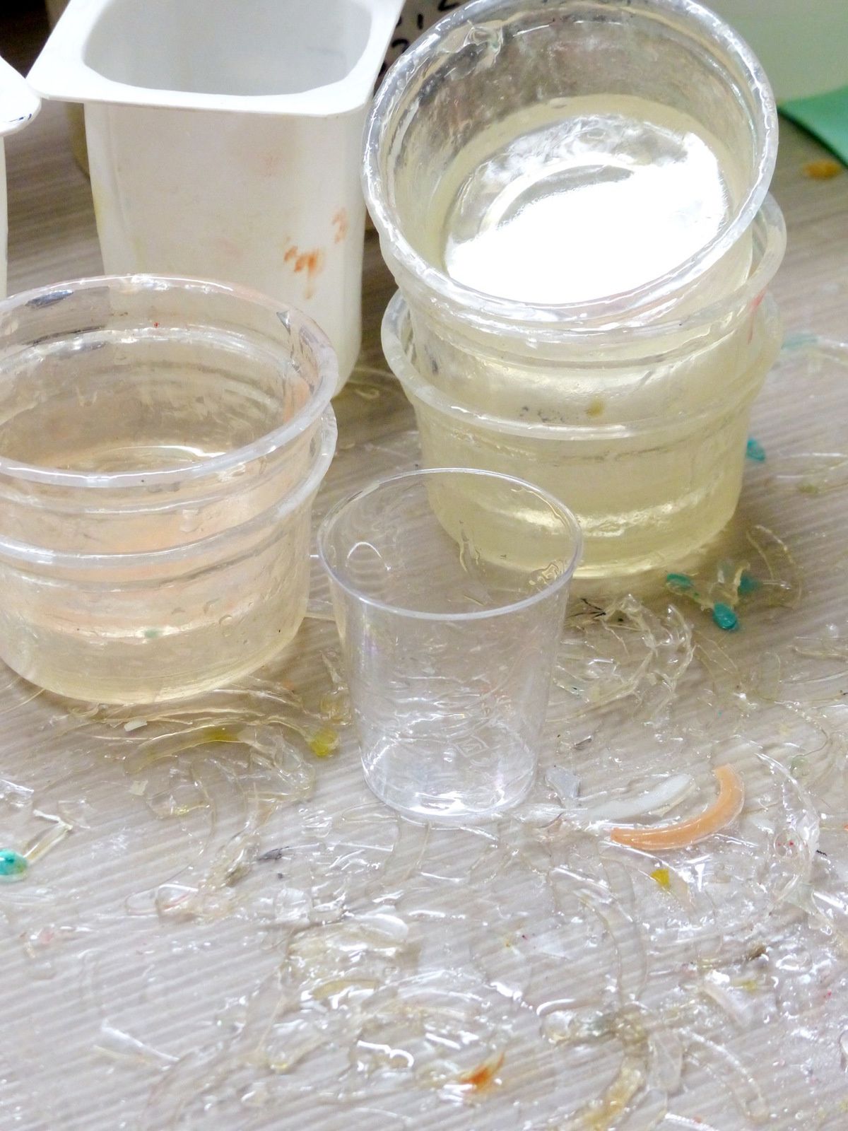 Bei langer Härtezeit benötige ich die doppelte Menge an Equipment, da am nächsten Tag das Mischbesteck immer noch klebrig ist.)